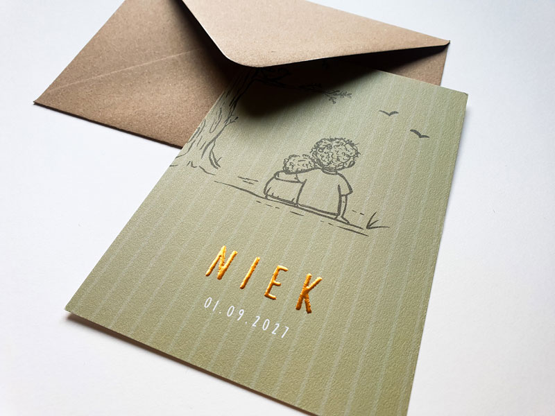 Of je nu gaat voor een modern minimalistisch ontwerp met lijntekening of een klassiek kaartje met bloemen en illustraties – foliedruk geeft het geboortekaartje nét dat beetje extra.